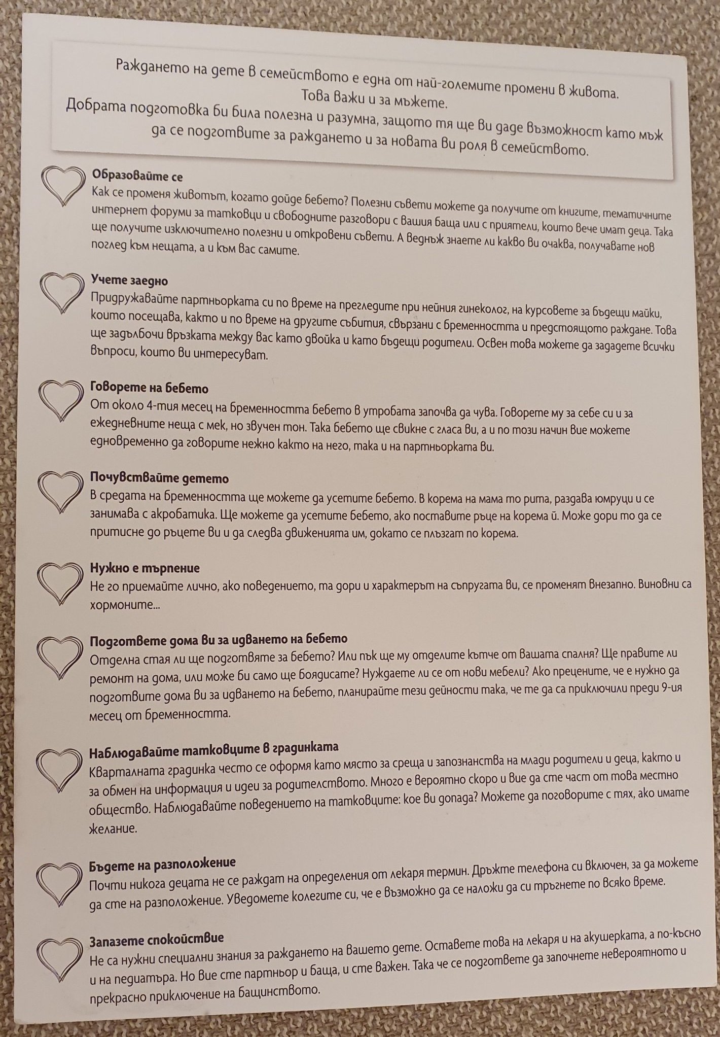Таткото ще присъства на раждането, а аз дори не се бях замисляла, че това е въпрос, който трябва да го питам, докато не ме питаха роднини в България. Както и да протече, ще ми е упора, а и за него е важен момент. Не мога дори да си представя да не споделя тази емоция с него.
