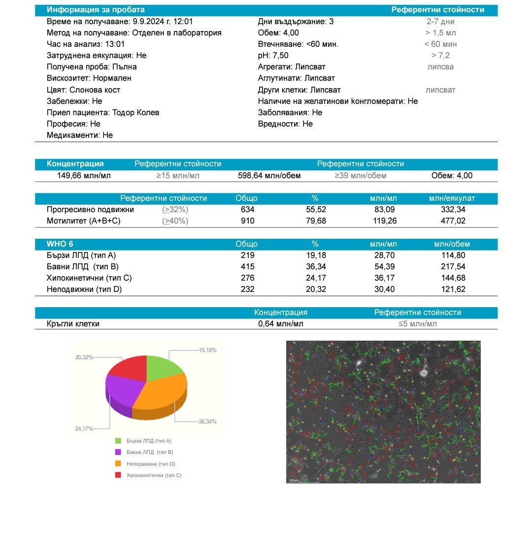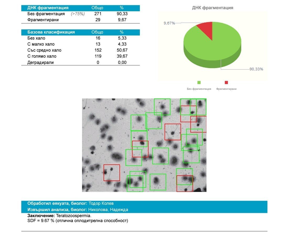 Мъжът ми направи спермограма с ДНК фрагментация, която направихме на своя глава, защото двама АГ казаха, че нямало смисъл, че проблема 100% не бил там, че аз щом 4 пъти съм забременявала без проблем нямало как причината да е в спермограмата и не знам си още какво.