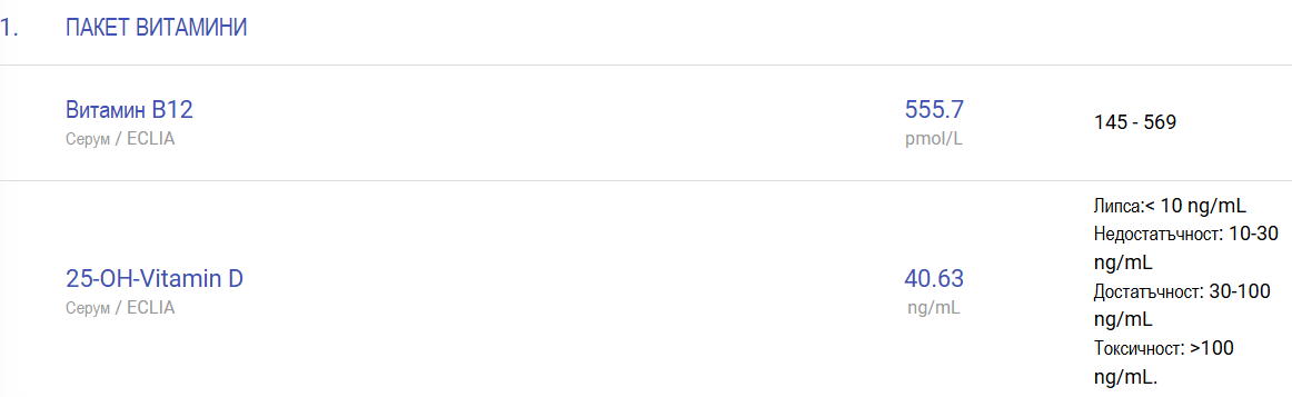 Аз минавам да се похваля с резултати. След 2 месеца прием на витамин Д /червения спрей на BetterYou/ и витамин В12 /пак на BetterYou/ стойностите са се покачили. Утре чакам да излезе и фолиевата киселина. Изследванията са пускани след 14 дневна пауза. За справка - в края на май витамин Д беше 11.31 ng/mL, а В12 - 269,9 pmol/L