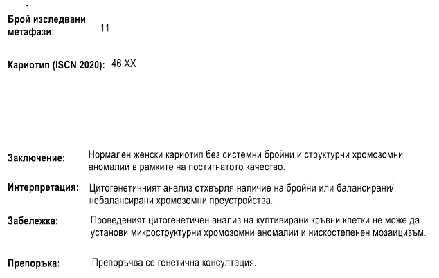 На пръв поглед ми изглежда добре, но ме притеснява частта с "Препоръчва се генетична консултация". Дали е нещо стандартно като коментар? Как мислите?