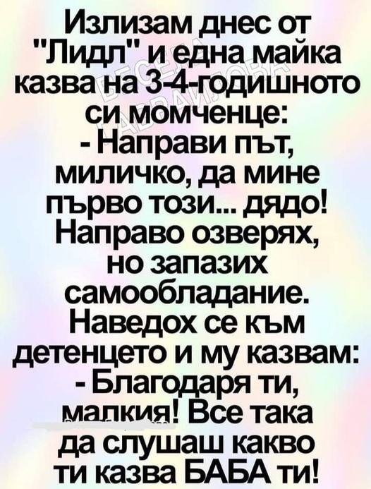 –Гошооооо, слизай вече, пет минути минаха...