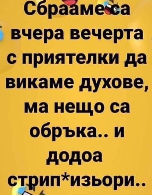 - Пробвах вчера ама не успя... Първо с едната ръка, после с другата. После жена ми пробва с двете ръце, че и с уста... Извикахме и комшията, як мъж...