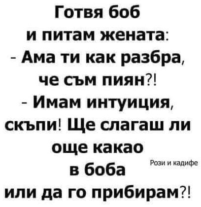 — А бе, момче, както ти прилошава така, недей да правиш толкова много секс бе…