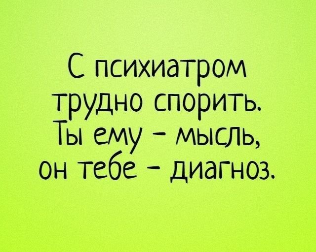 Трудно е да се спори с психиатъра. Ти му споделяш мисъл, той на тебе - диагноза.