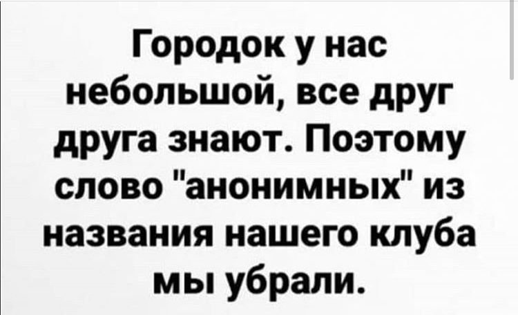 Градчето ни не е голямо, всички се знаят един друг. Ето защо премахнахме думичката "на анонимните" от името на нашия клуб.