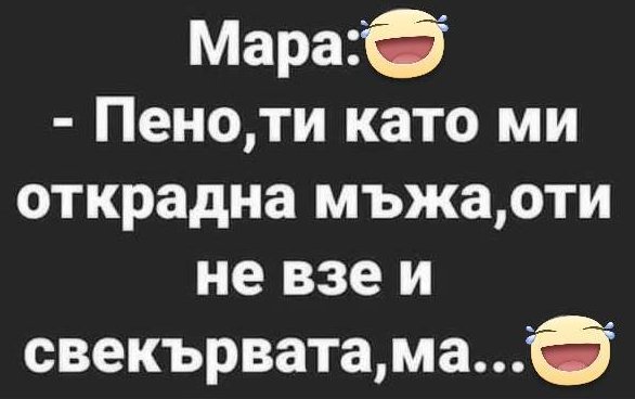 - Какво и се назлъндисваш на хубавата комшийка, целият вход я оправи, ще си помислят, че съм се омъжила за левак...