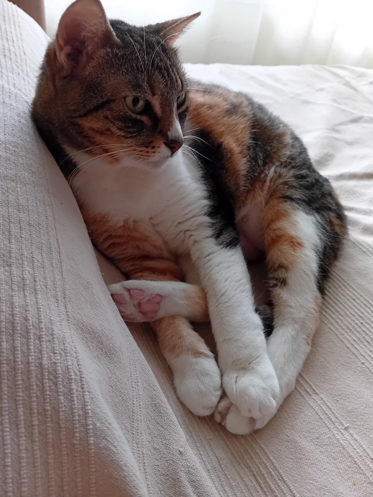 Феликс е много страхлива. Ходене на доктор е ужас - не дава да я хвана, а по пътя, дали с кола или ГТ е ужас. Реве сякаш я колят. Веднъж сглупих - изведох я в новата раница  на брат й. Тя излиза навън само при нужда и то в обикновена транспортна клетка. И в двата случая гласа й се чува. Ако дойдат гости вкъщи се крие.