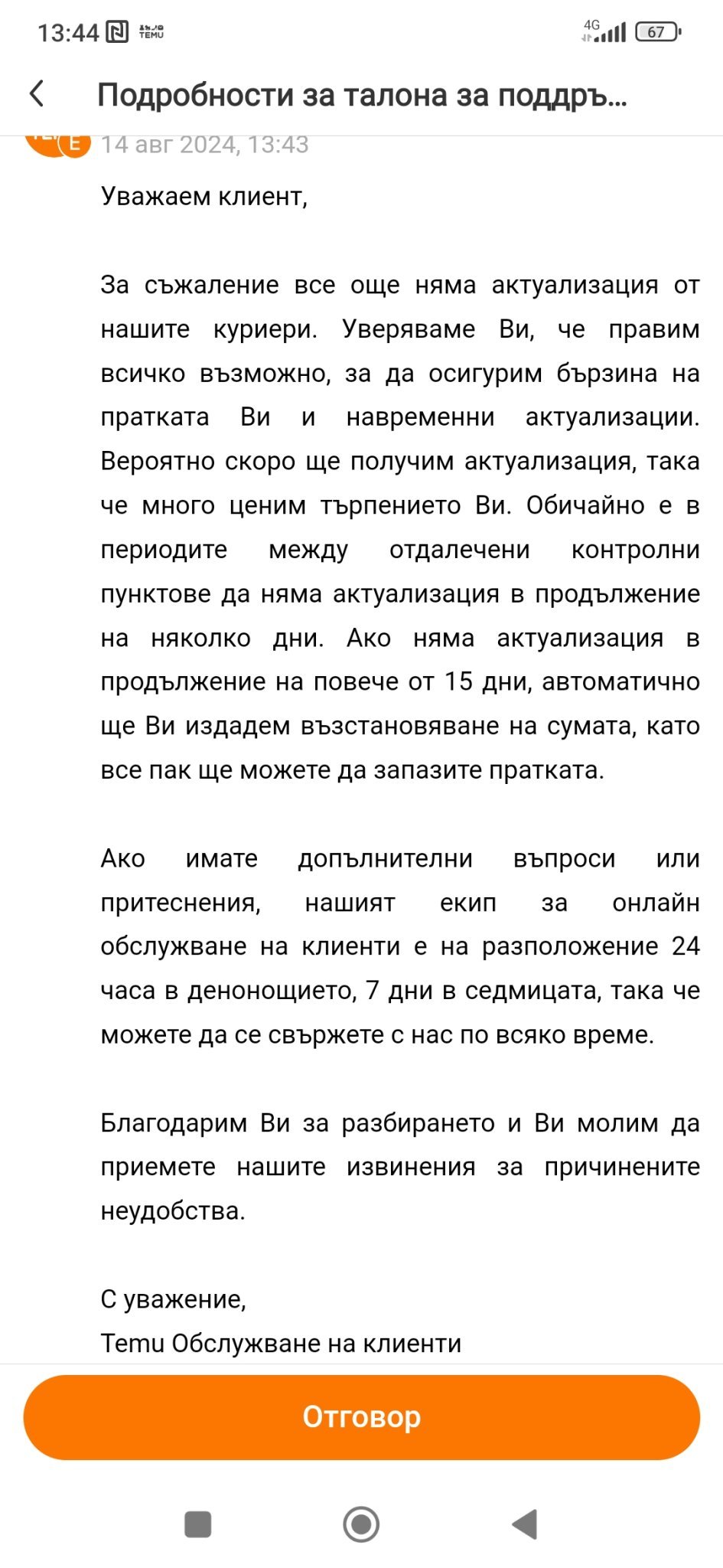 Днес явно китайците си ги подгонили, и получих някакъв отговор, че ще проверят и ще се свържа с мен.