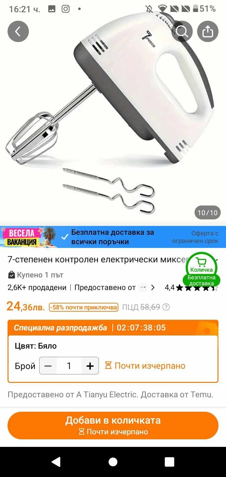 Имам 2 профила - мой и на мъжа ми. В моя профил ме спукват от оферти всеки ден - къде супер изгодни, къде - не толкова, къде хич Simple Smile Мъжът ми не получава абсолютно никакви оферти. Вероятно при регистрацията съм чекнала нещо, за да не получава оферти. Споделям само някои от нещата, които съм купила на много изгодна цена след оферта от Тему. Миксерът ми го намалиха почти веднага, когато го сложих в кошницата.