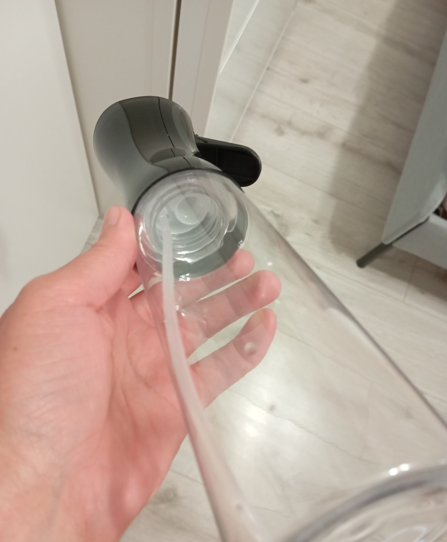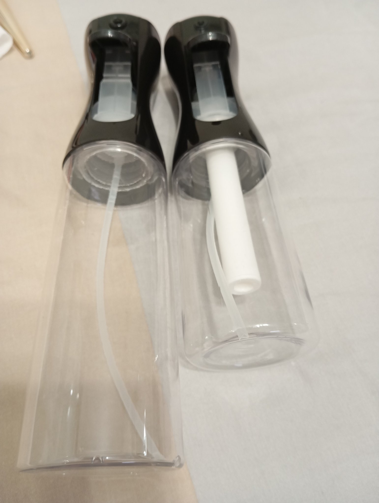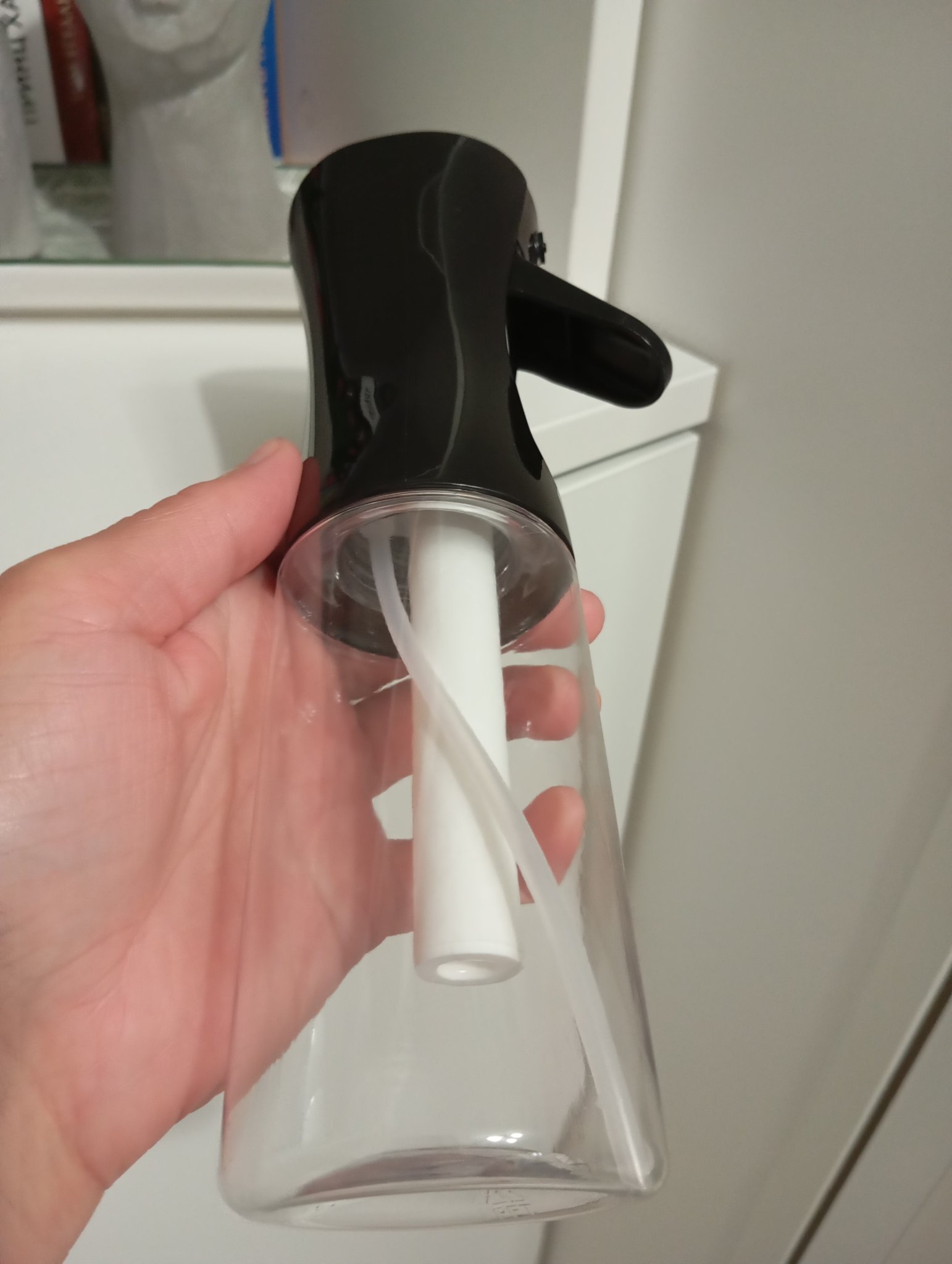 Някой има ли от тези бутилки за пръскане на олио. Едната има допълнителна дренажна тръбичка, а другата няма. Знаете ли за какво служи тя и дефект ли е.