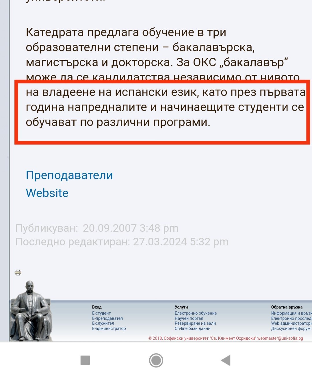 По спомен Испанска филология приемат 24 студента редовно държавна поръчка и 6 редовно платено.