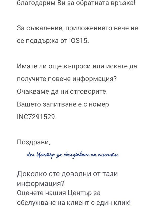 Ето какво ми отговориха ДМ за приложението и ОС: