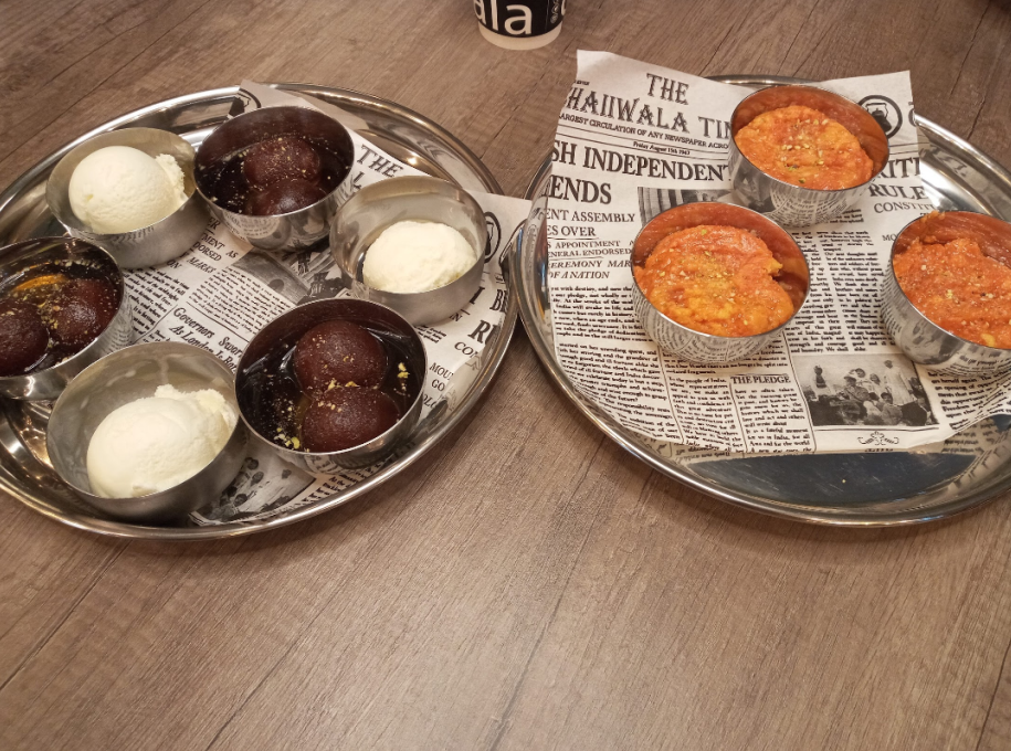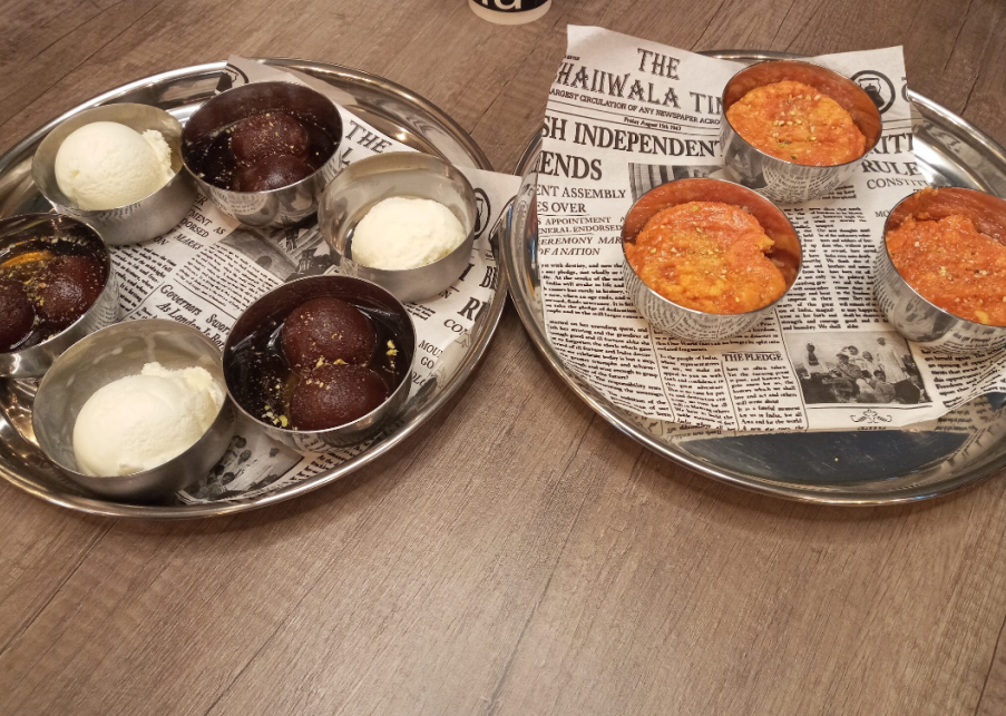 Грийни това на твоята снимка в горния ъгъл, по тъмните топчета също много го обичам, но е доста сладко, Gulab jamun се казва, сиропиран десерт със сладолед обикновено се поднася, малко на вкус като реване.