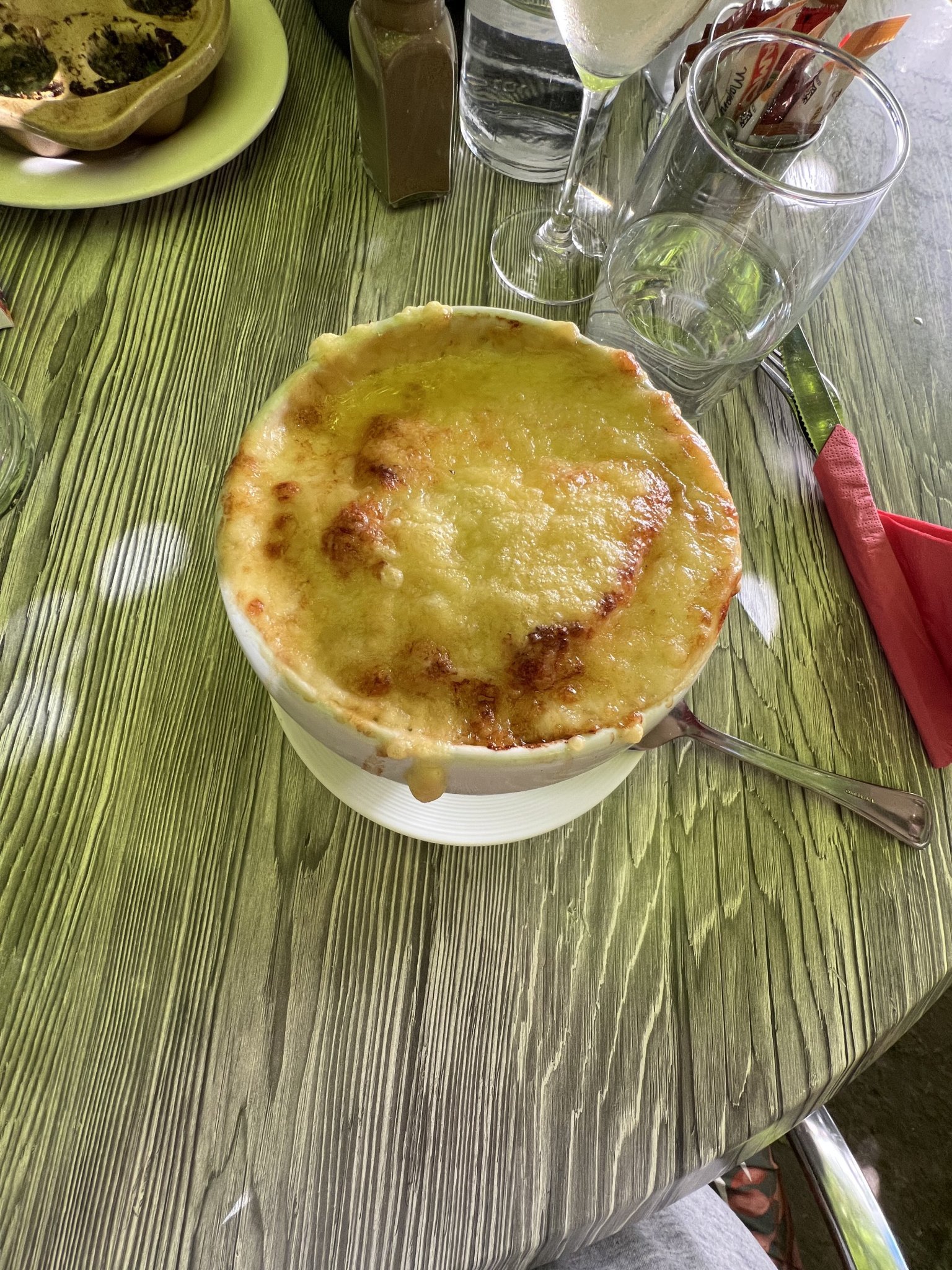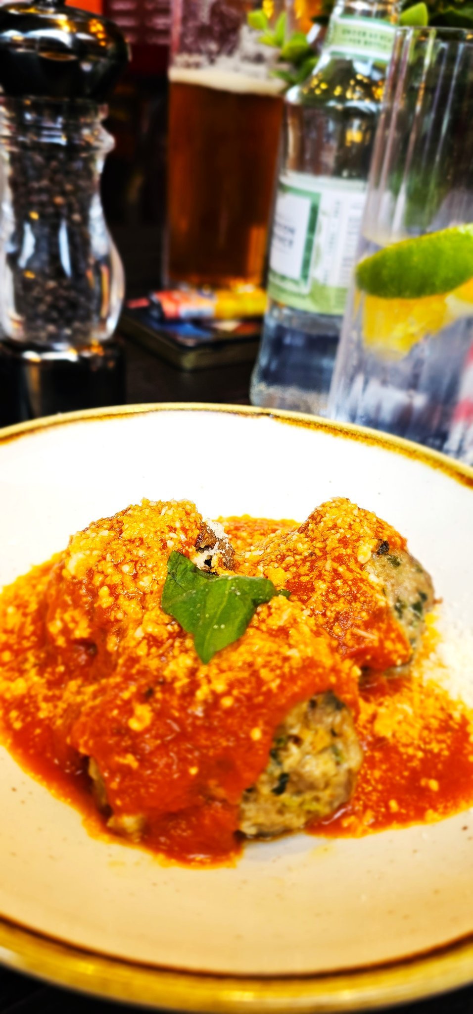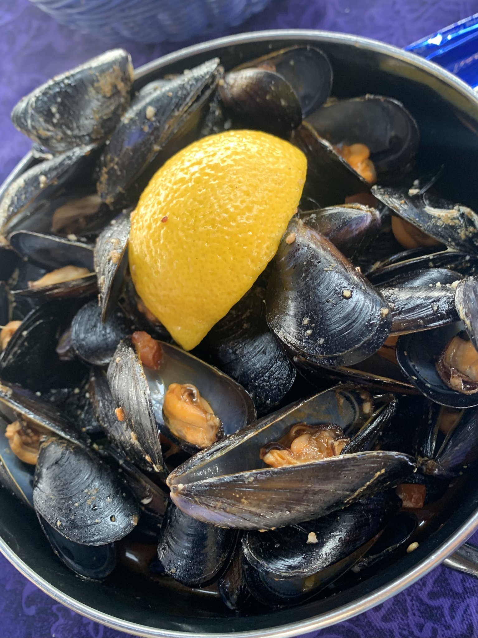 Ако ме питаш с какво е сготвен, честно идея си нямам. Лимона и стръкчето рукола са ясни. Беше сочен и вкусен, а в чашите имаше бяло вино.
