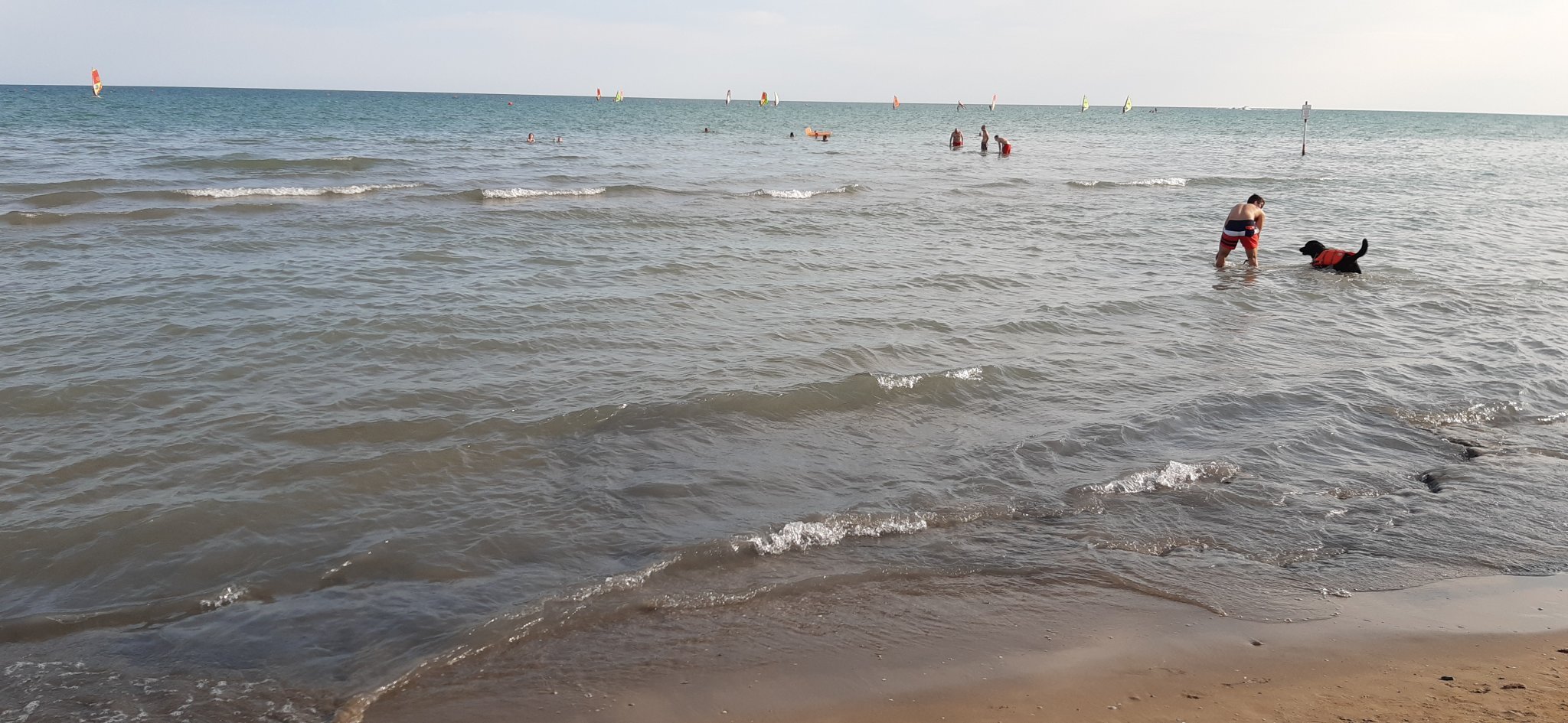 Привет от морето! Нашата Ина тръгна да влиза смело навътре, но в един момент замръзна и почна да плаче, та се наложи да я гушна. Подозирам, че ще си стои основно на пясъка.  Иначе плажа е хубав и много добре измислен. Малко е далече обаче от къщата,  в която сме. Градчето е малко смотано на 1во четене. Ще видим как ще е следващите дни.