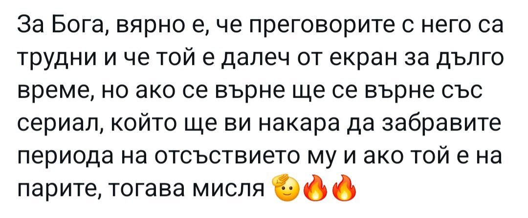 Определено смятам, че избора на добър сценарии е водещото при Чачатай, както и героят , който ще пресъздаде....
