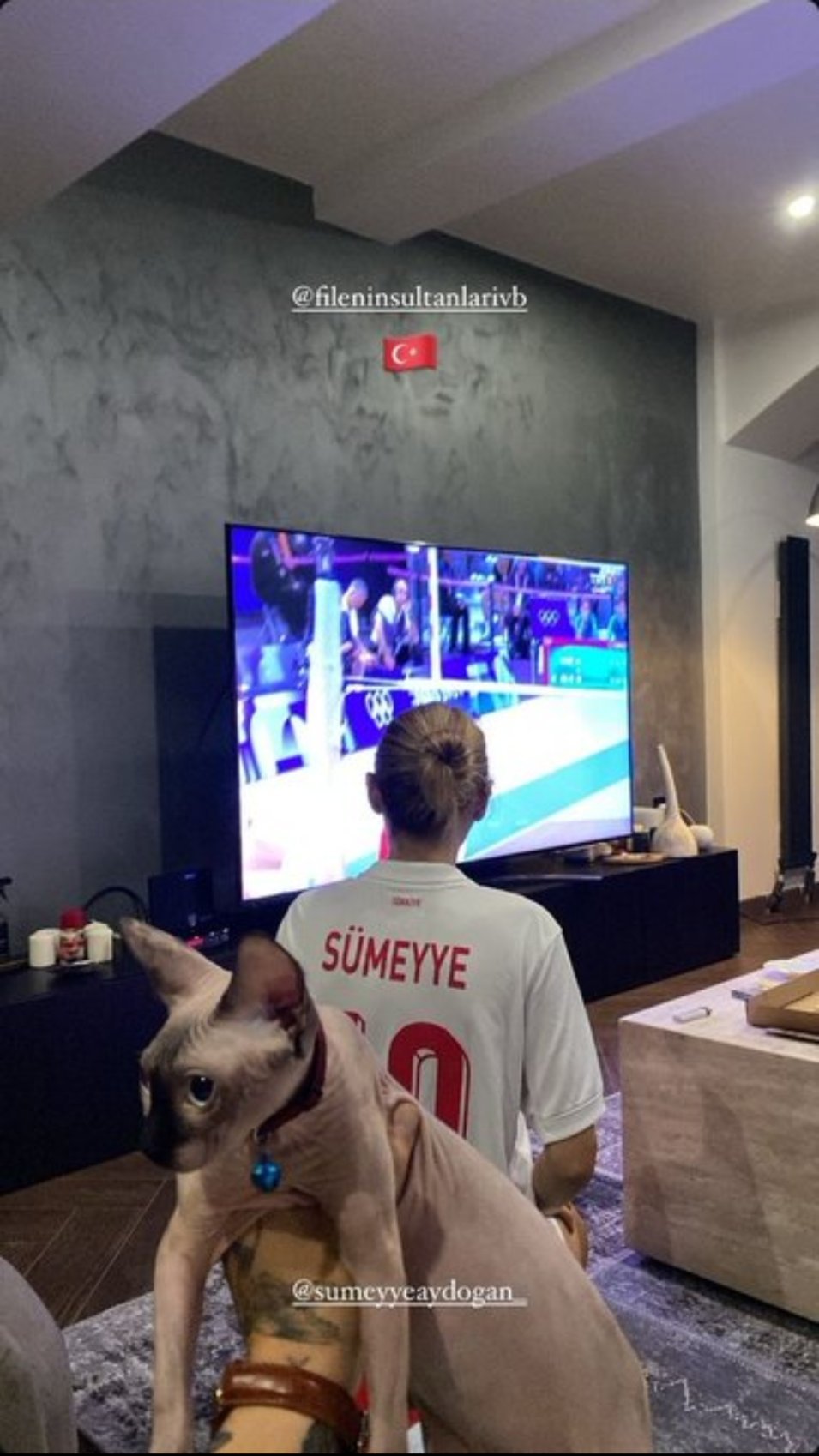 И Сумие е подкрепила женския волейболен отбор на Турция, но пред телевизора.