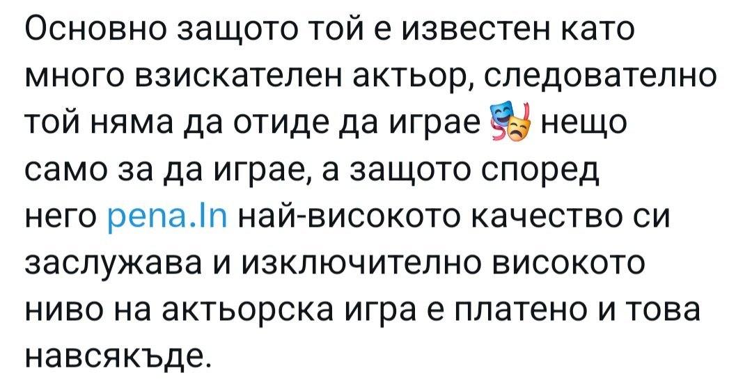 Абсолютни фенски измислици. Чачо е толкова взискателен, колкото всеки актьор на неговото ниво.