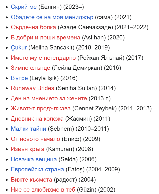 Ето част от сериалите, в които е снимала