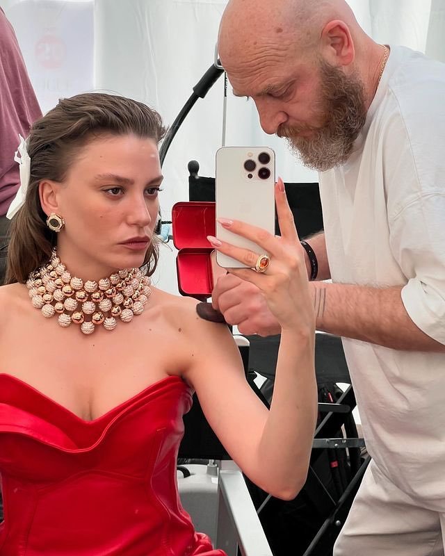 Иначе миналата седмица бях малко почивка. На басейна, където ходим имаше турско семейство. Мъжът, като изключим гигантските златни гривни и на двете ръце, носеше златен гердан и отпред и отзад имаше голяма черни топчета. Беше много интересно, затова го загледах. Не съм гледала мъжа. Обаче нямам идея защо се сетих за бащата на Ферия в сериала. Той имаше гердан със черен камък и кожена каишка по врата. Реших, че е нещо религиозно. А и сега това бижу. Не знам, пак същата асоциация, на тези двете ми напомня.