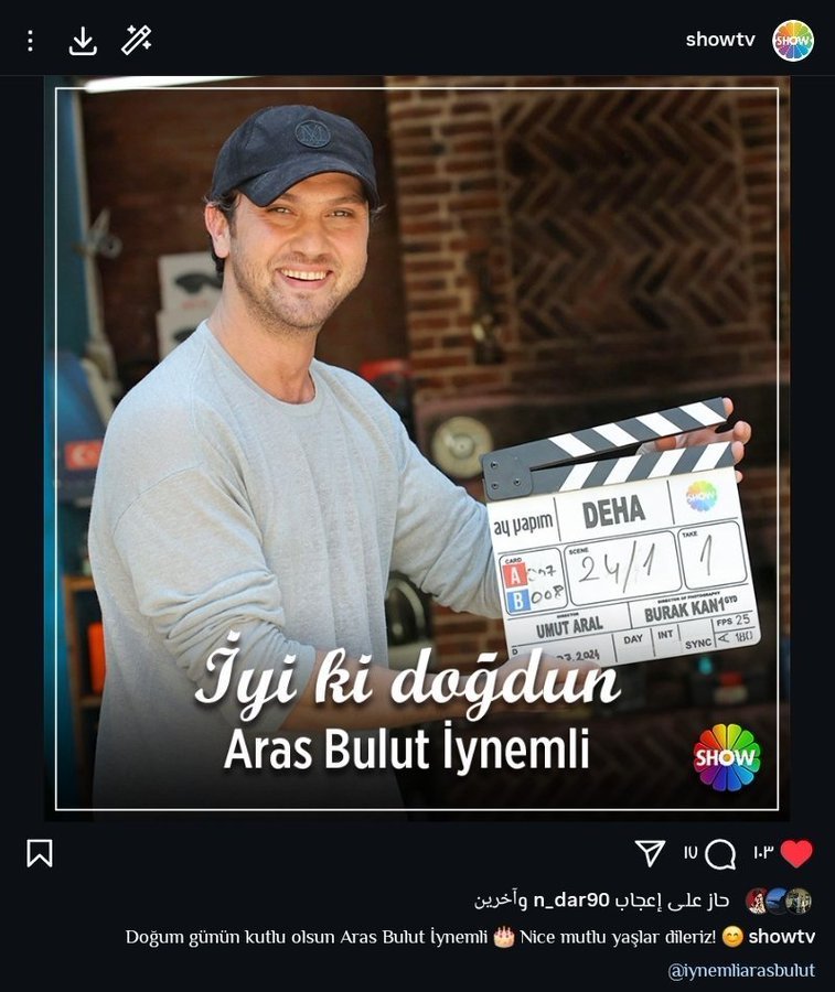 Здравейте,дами. Минавам за поздрав. Аз бях много запалена по "İçerde" . Днес Арас е рожденик. Едно приятелско селфи с Чачо и Арас(Сарп и Умут)