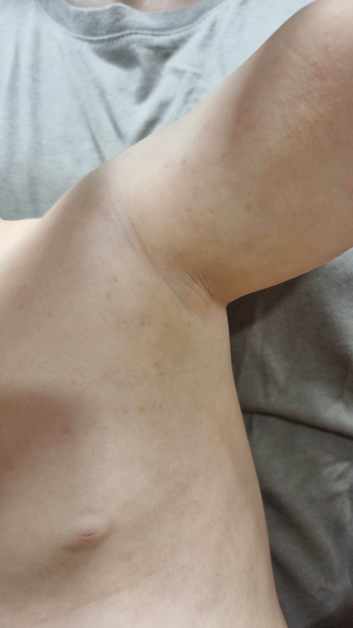 Сега забелязах, че са избили някакви пъпчици на малкия. Това прилича ли ви на Розеола или по-скоро прегряване? Не се вижда много на снимките, но дано добиете представа какъв е обрива. Имам спомен, че големият ми син я изкара около тази възраст, но обрива беше по изявен.