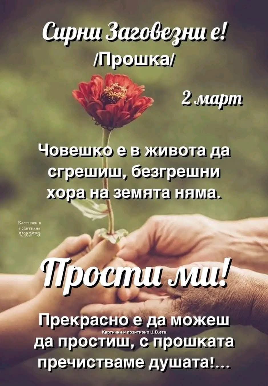 Редактирам се, понеже днес е Прошки и да помоля, ако съм ви обидила или наранила нещо, да ми простите!