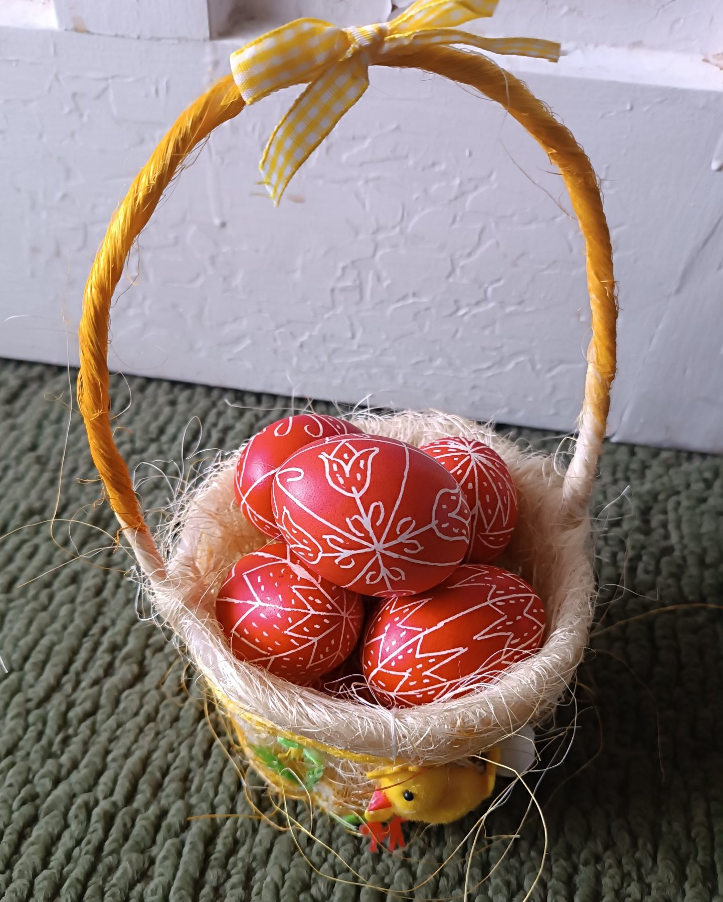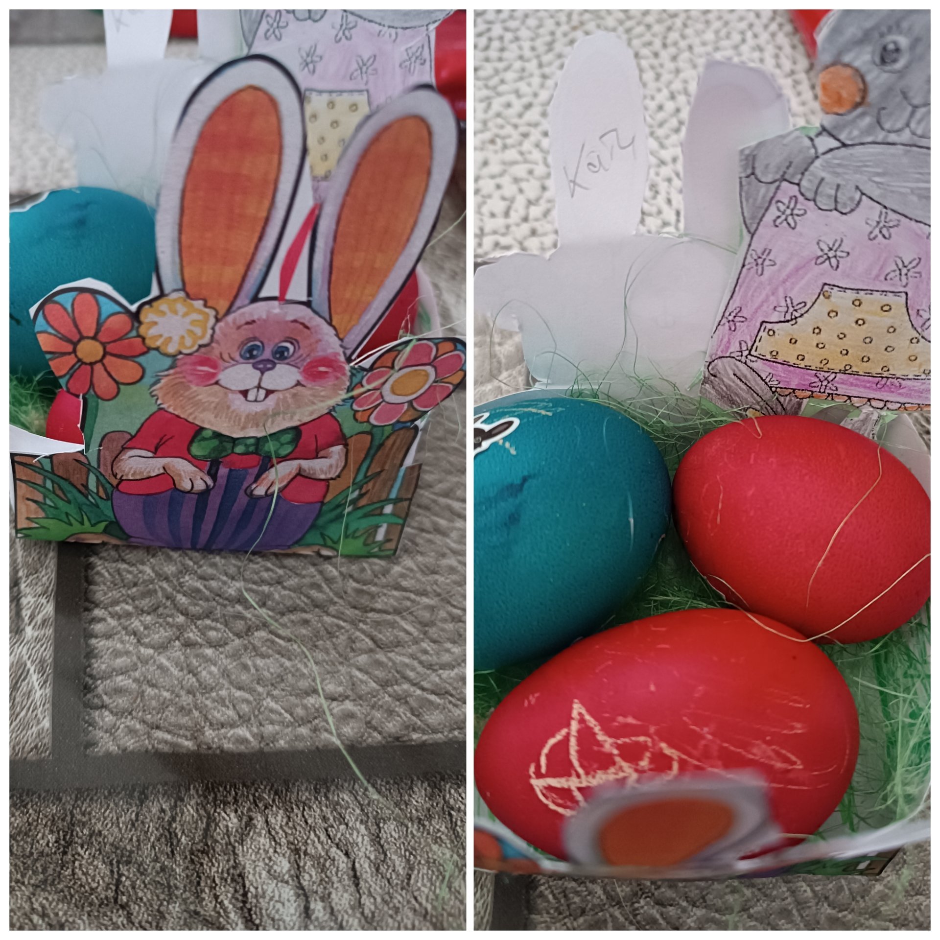 Ние ще боядисваме в Събота, но и днес имам 3 боядисани яйчица, в градината децата са боядисвали. Страхотни са, кошничка са направили, постарали са се госпожите.