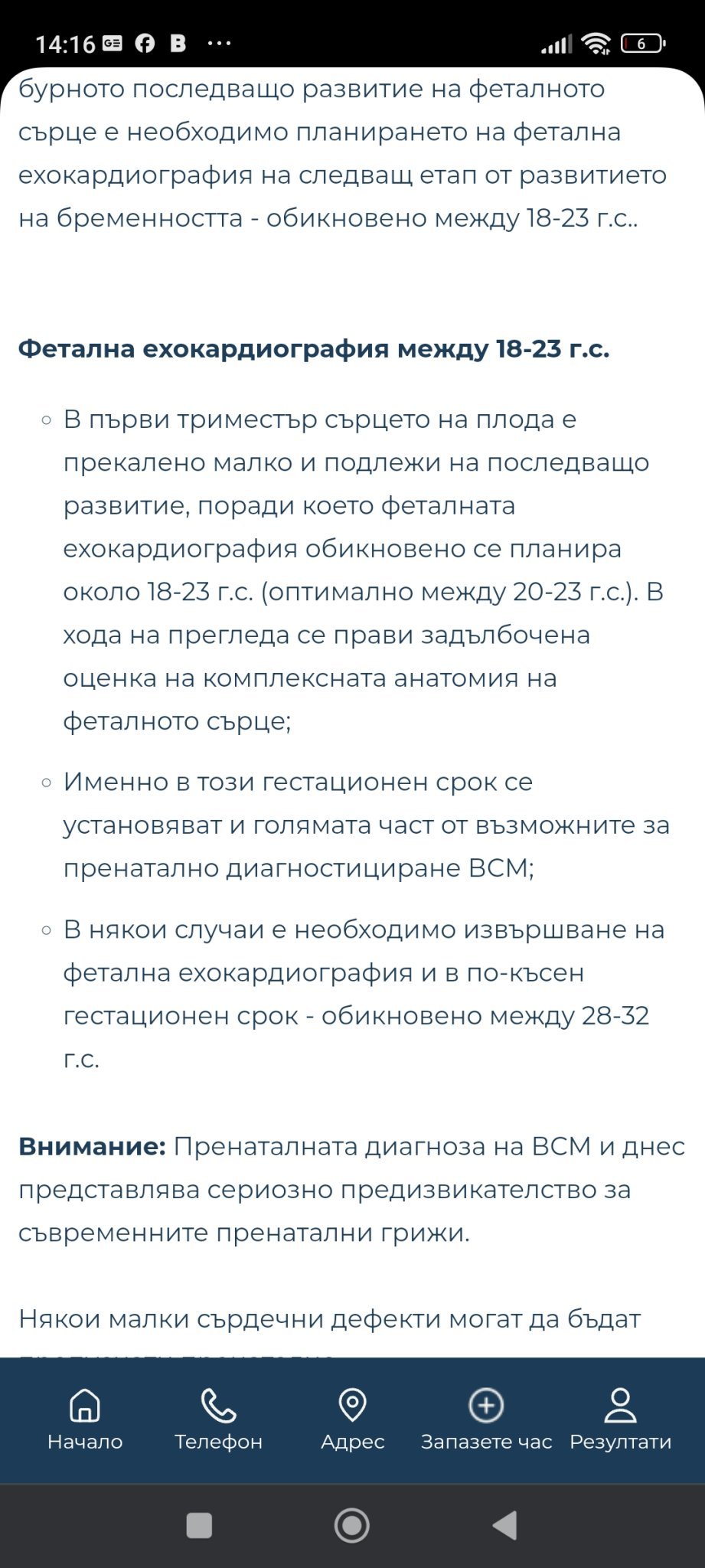 Аз записах час за ехокардиография също. Проследяващата АГ не ми е дала индикации, но моята приятелка ходи в 22 г.с. и затова мисля и аз до отида. Баща и е гинеколог и я изпрати да отиде.