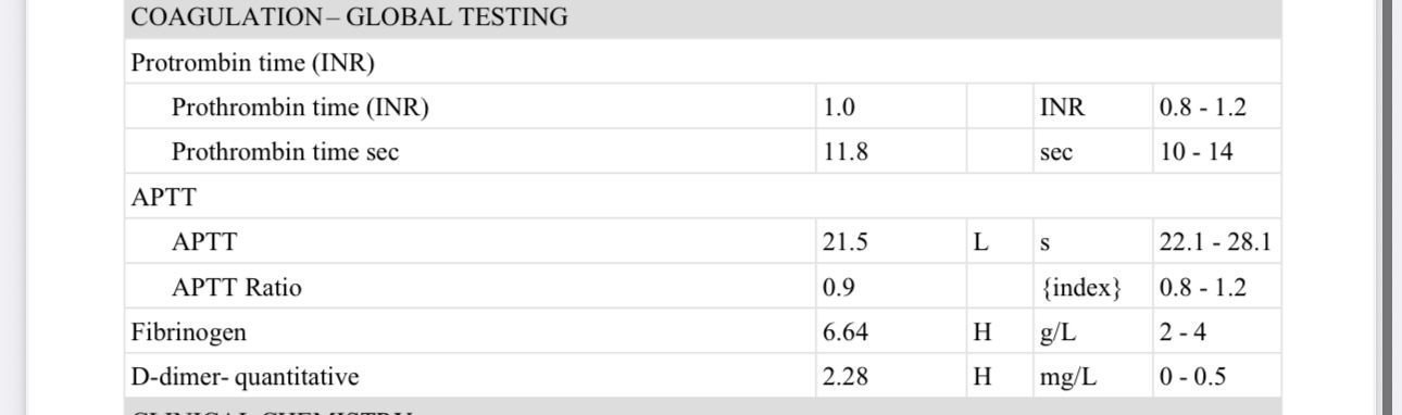 Ниско аптт и много висок фибриноген за седмицата (дори за 3 триместър би бил висок, там границата е 6.2). Задължително инжекции, иначе рискът за загуба или тромбоза при вас си е ваш (не го казвам от лошотия, но това не е хранителна добавка да решавате дали да я почвате - тоест ако не почнете инжекциите съществува сериозен риск и е редно да сте наясно).