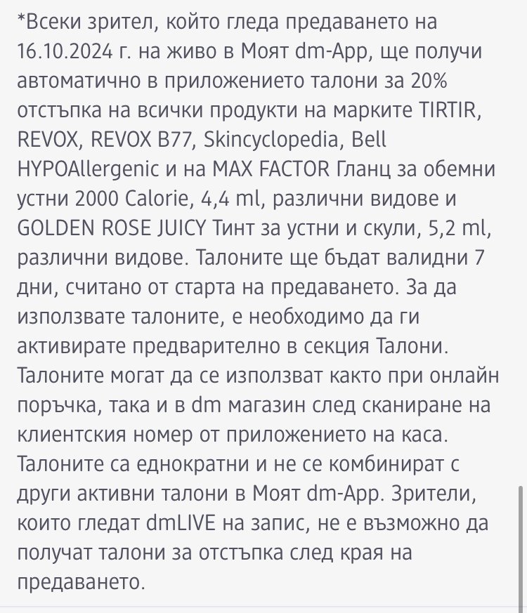 Утре вечер ще има лайф на ДМ и ще има талон за Ревокс.