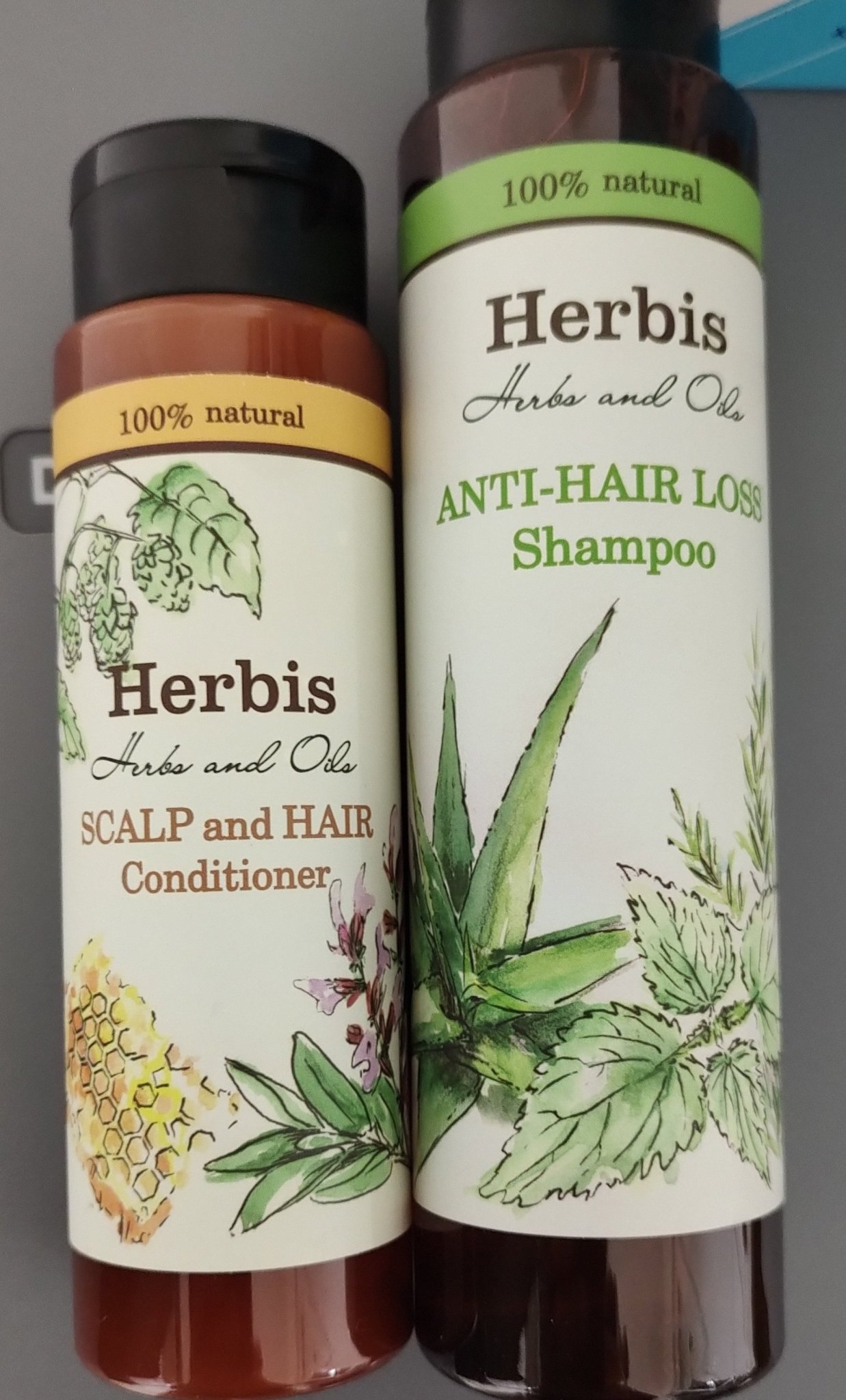 Днес купих шампоан и балсам на Herbis от Лили дрогерия за моя косопад. Пише, че са 100 % натурални.