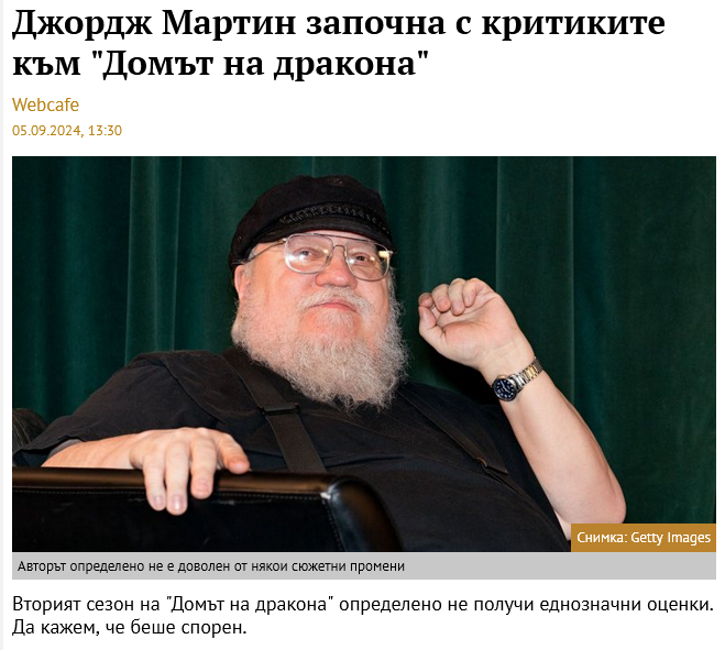 А след като самият Мартин си позволи да отправи известни критики към "Домът на дракона", значи работата наистина може да се окаже зле.