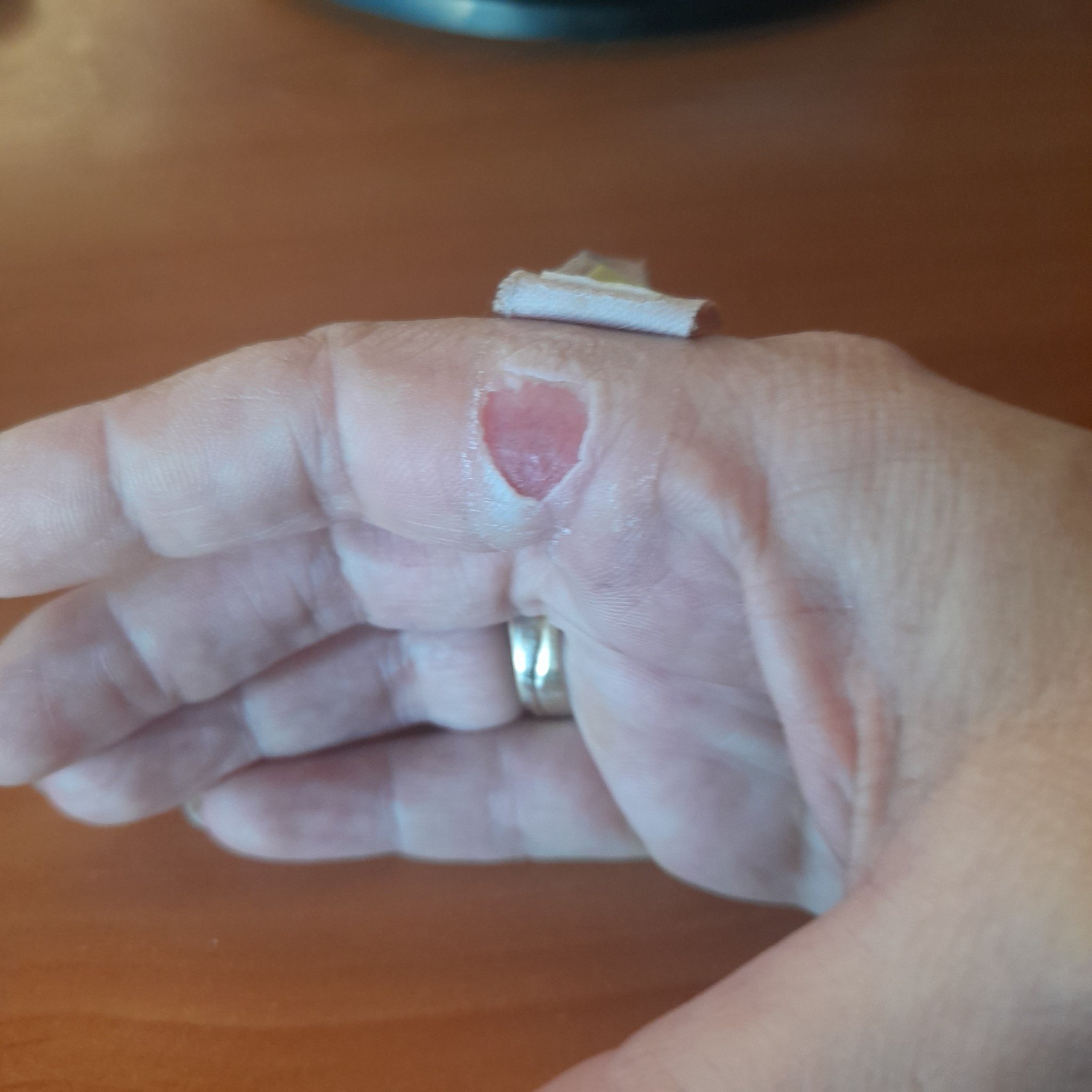 И аз не съм усетила. Ма ко, какво ти е на ръката? Каква свлечена кожа?