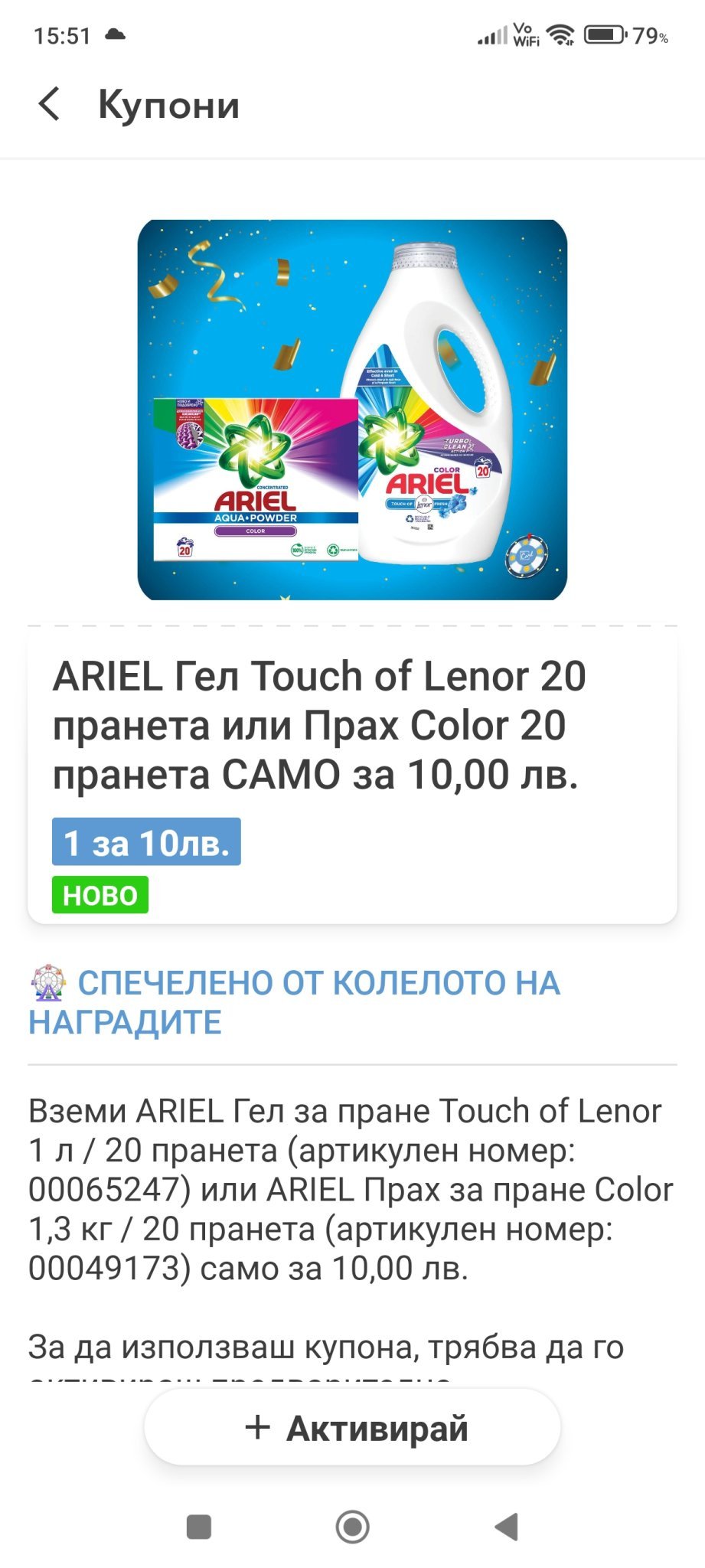 Имам 2 купона от колелото за Ариел. Ако някой ги иска, да пише.