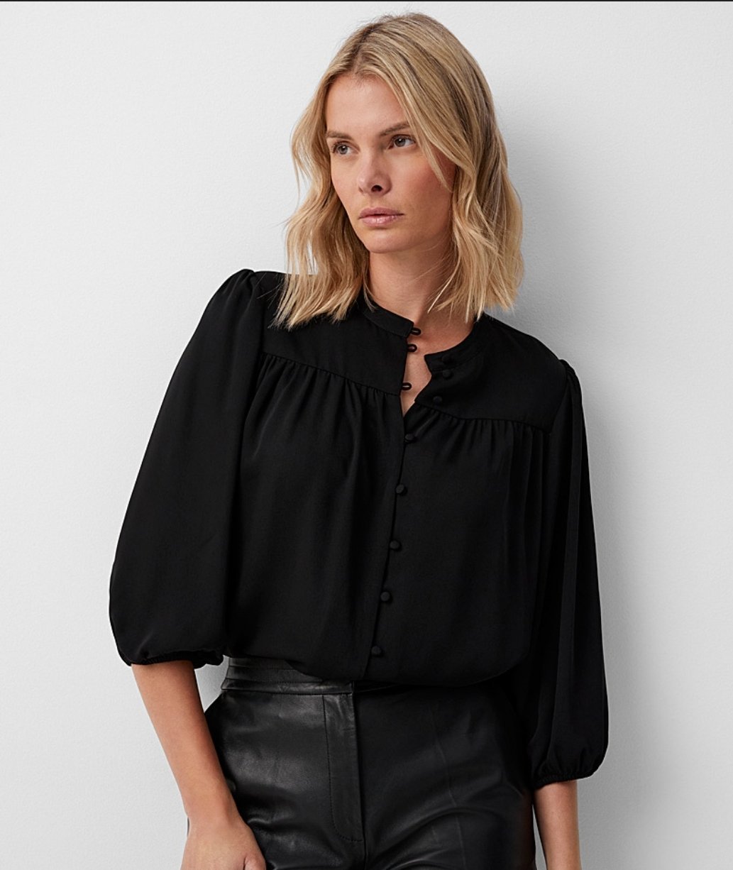 Опитах бяла риза дълъг ръкав сатен/коприна. Не се възприех с плътния черен чорапогащник. Просто сякаш бях сложила нещо лятно на нещо зимно. По моето възприятие поне.