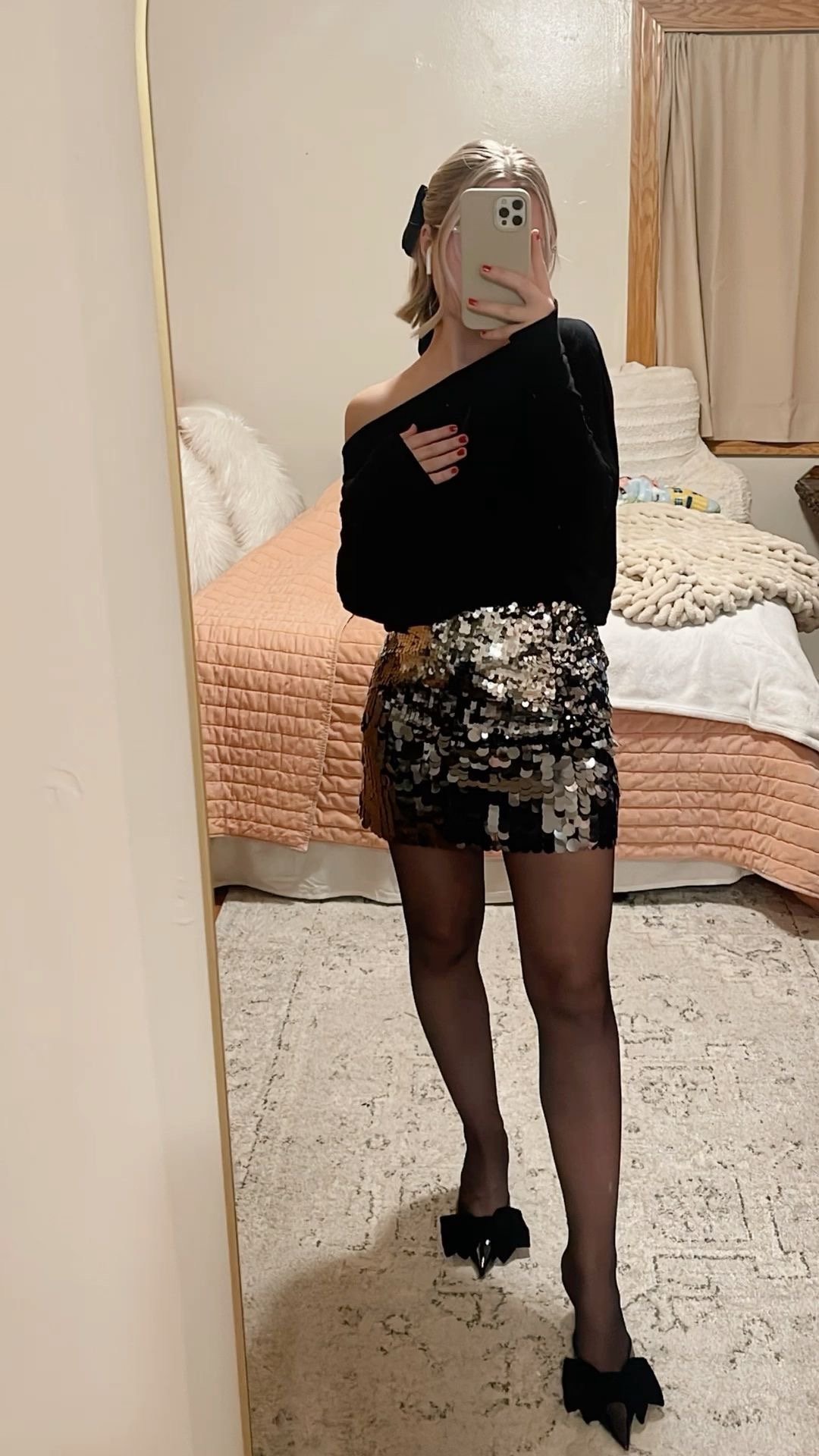 Полата е твърде разтеглива и с цепка, не изглежда добре. Имате хубава фигура, но полата стои някак странно и все едно ви е малка. Аз обожавам лъскаво, но бих предпочела ако са панталонки или трапецовидна пола от по-твърда материя. С висока талия. И бих сложила мъхесто черно пуловерче ии черна/бяла изчистена тениска. Нещо, което да придаде по-модерен/небрежен стил. Да освежи полата.