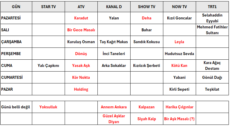 Програмата! Дните , в които ще се излъчват сериалите през новия сезон! Петъкът е запълнен! 🙄