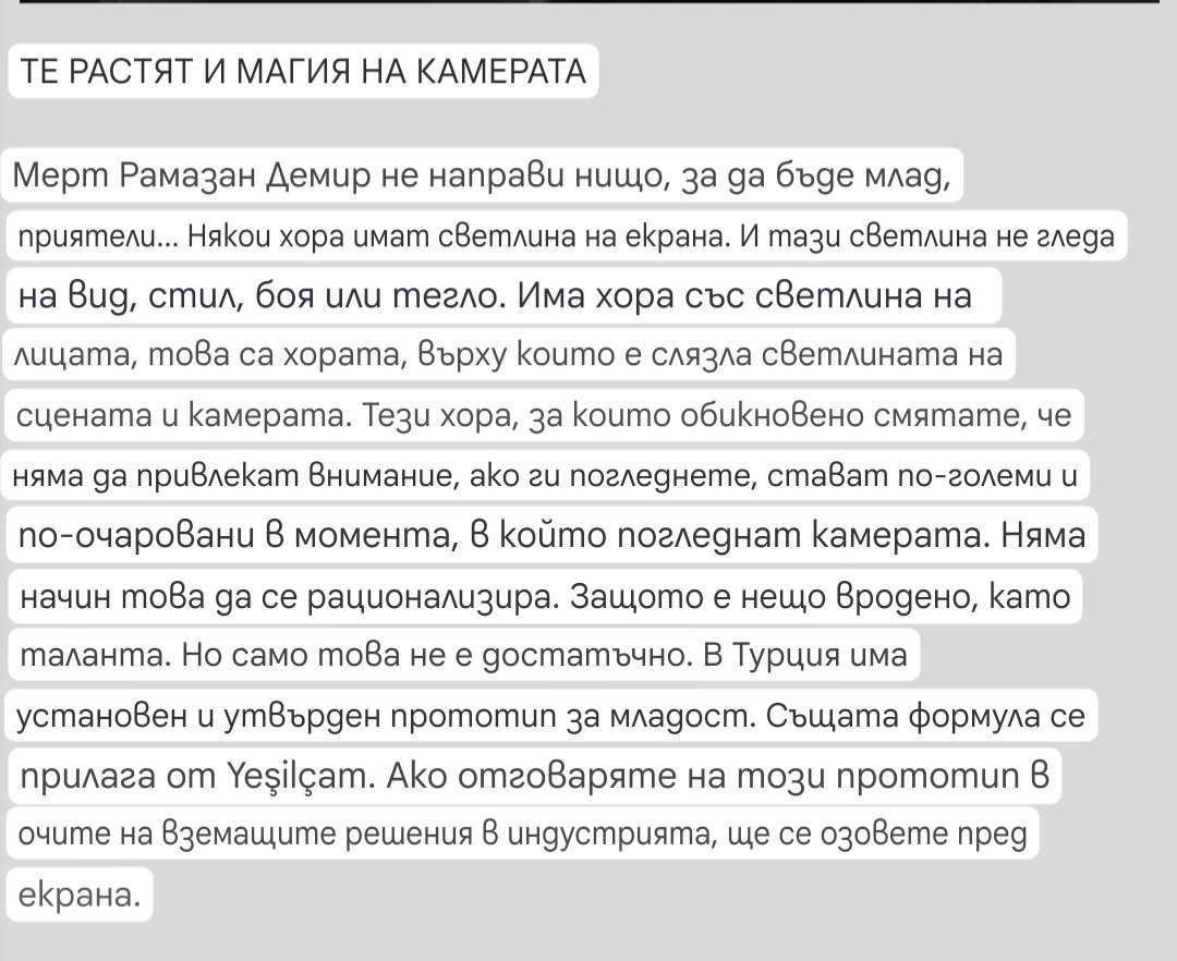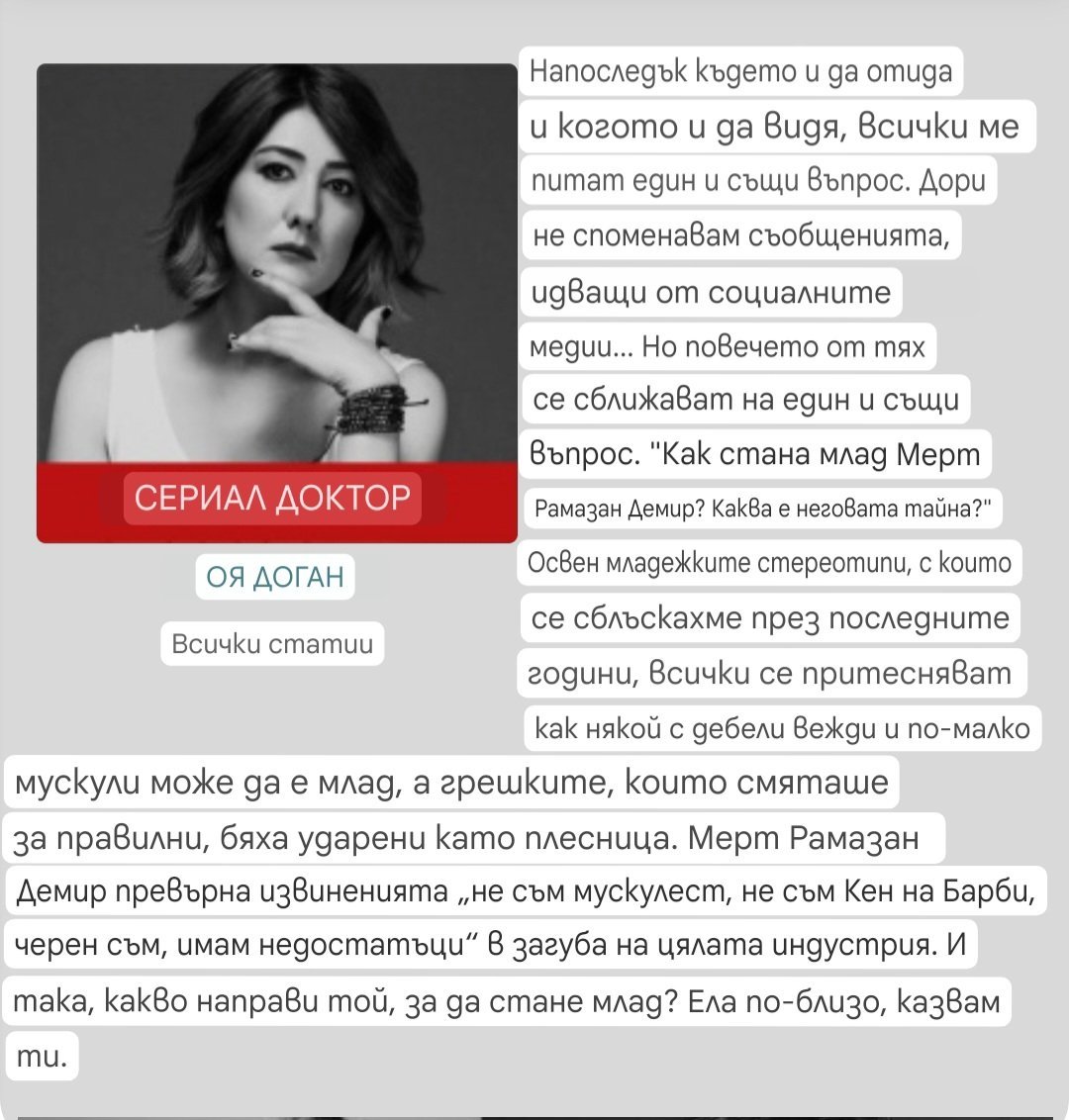 Днес цял ден забравям да пиша, че Ойя Доган- кинокритик и журналист е написала много хубава статия за Мерт 🧿❤️