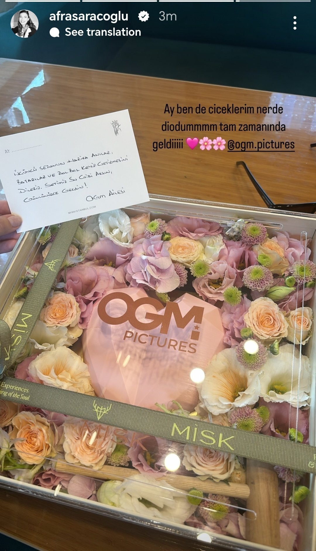 ОГМ е подарил цветя и картичка на Афра във връзка със старта на 3 сезон. Предполагам за всички има, щото пожеланието не е персонализирано.