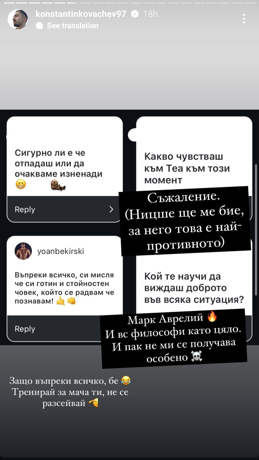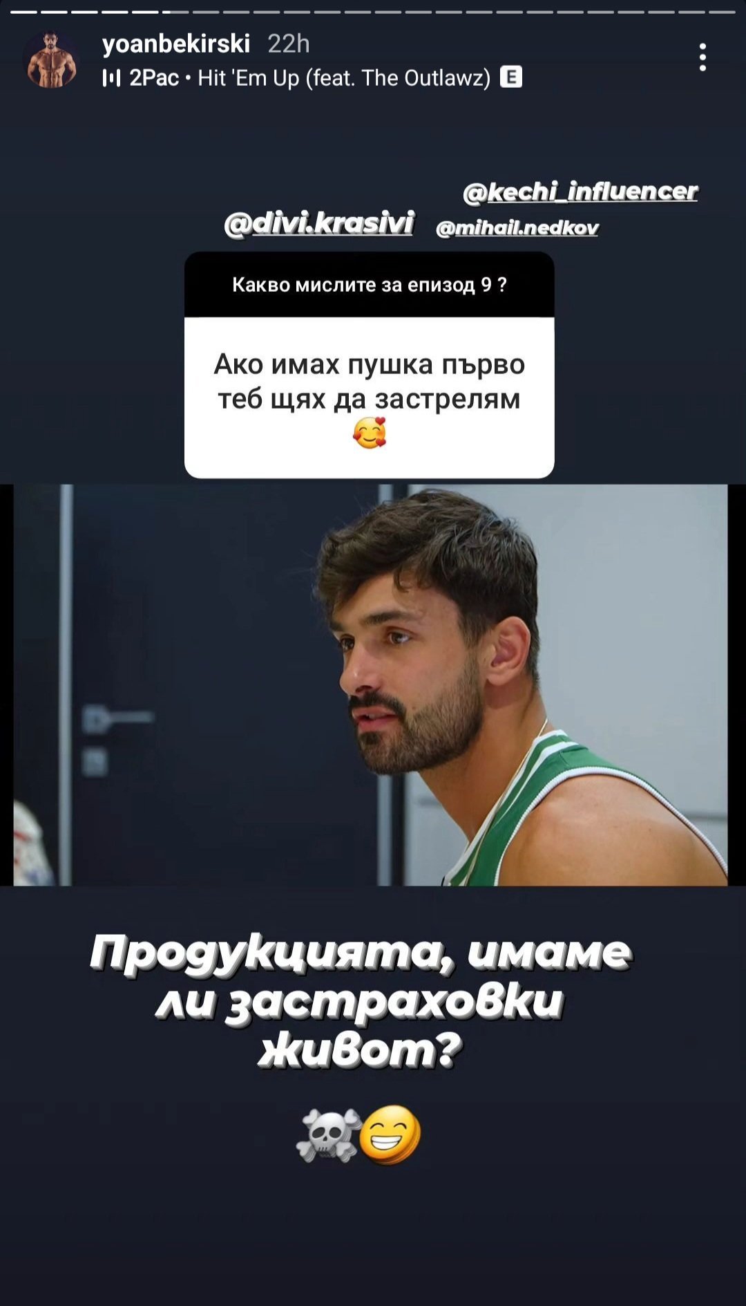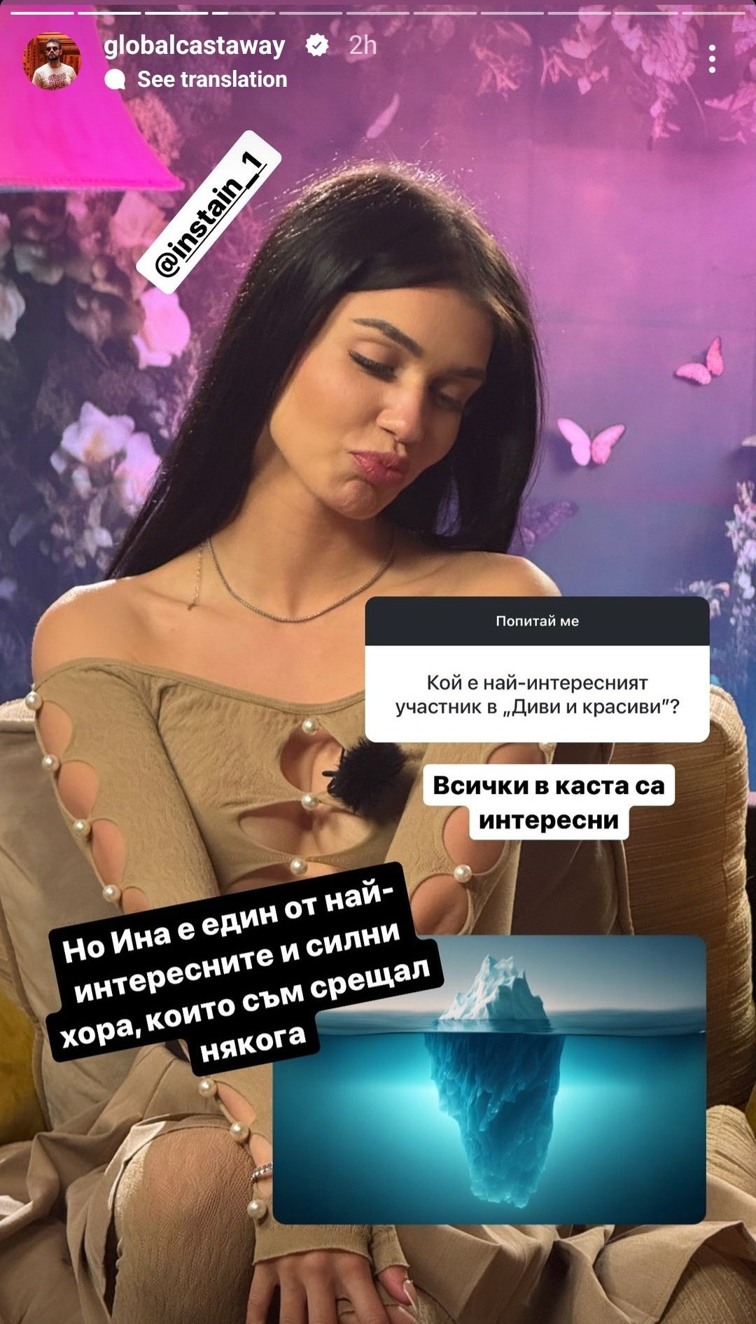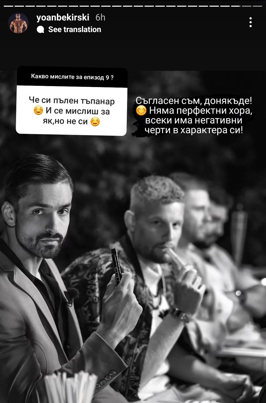 Йоан - не разбирам какъв човек си, за да отидеш в профила на някого и да му пишеш обиди. И на мен не ми е симпатичен,  но... Това важи и за хейтърите, които пишат директно на Ина и на всички останали.