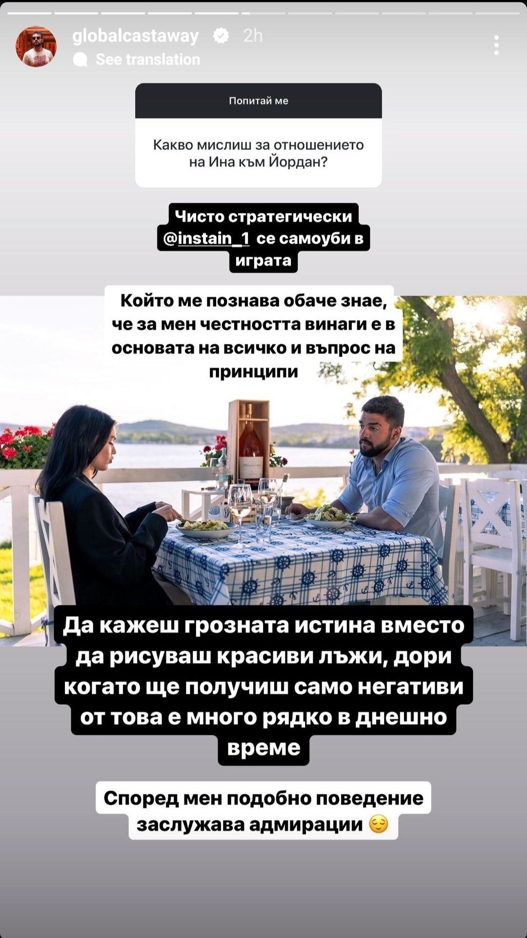 В " спора "  Ина & Йордан ,за мен печели Йордан. Ина е токсична и агресивна.