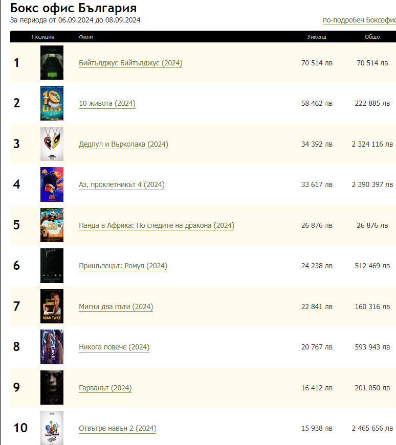 Дедпул и върколака пък са на 23 място и вече имат шанс да влязат в топ 20 за сметка на Стар Уорс епизод 8, като разликата е $47 млн. Трудна мисия, но не и невъзможна, въпреки че аз отдавна писах, че няма шанс да влезе в престижния топ 20 клуб. Просто международния приход е недостатъчен. Филмът има грубо $673 млн. приход, докато за сравнение, Отвътре навън 2 има $1.023 млрд. А и двата филма вече са на доизглеждане и приходите набъбват вече с малко.