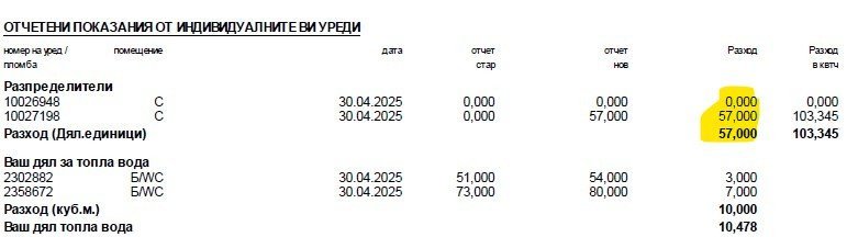 както казах назад, тези единици (57) не са разлика между показанията на уреда сега и по предишен отчет