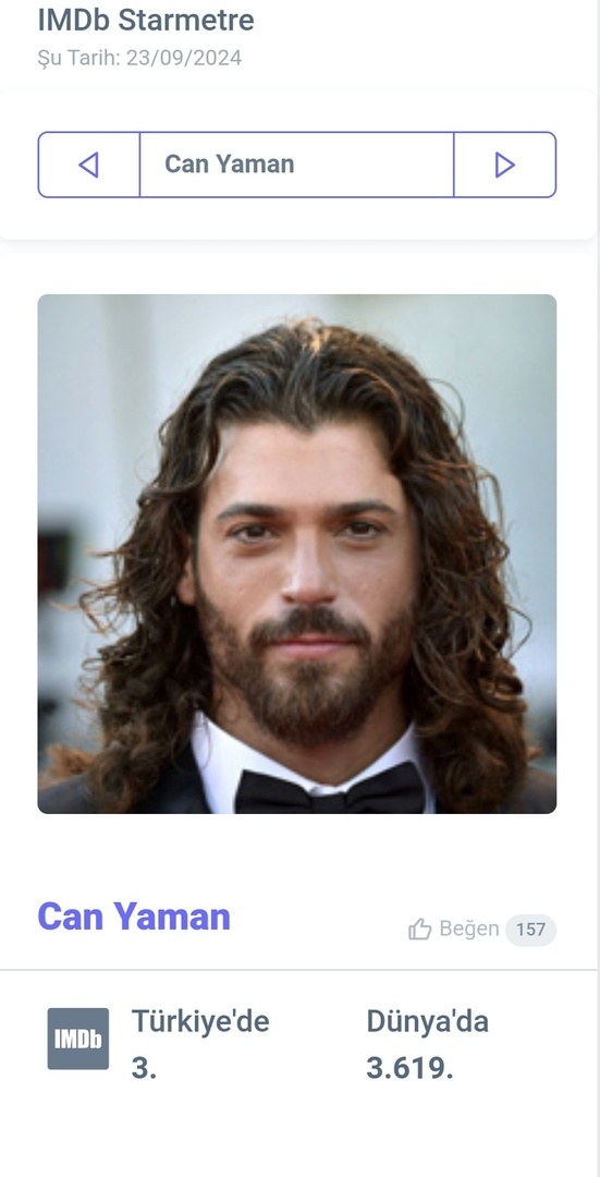 Джан Яман е класиран на 3-то място сред всички турски актьори и актриси в класацията на IMDb за седмицата, започваща от 23.09.24 г.