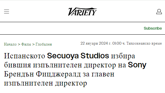 "Испанското Secuoya Studios избра опитния изпълнителен директор на Sony Pictures