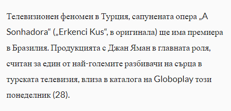 е показана като един от най-ярките примери за върха, който турските сериали са достигнали