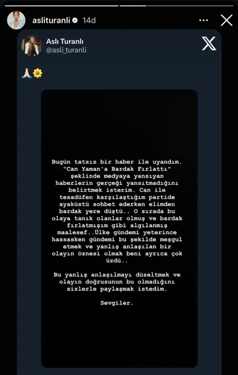 дойде изявление от Аслъ Туранлъ. Аслъ Туранлъ обясни задкулисието на инцидента.