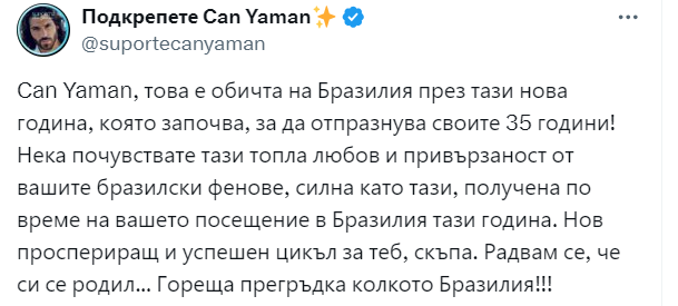 в IG —— Can Yaman, това е привързаността на Бразилия през тази нова година, която започва, за да отпразнува своите 35 години!