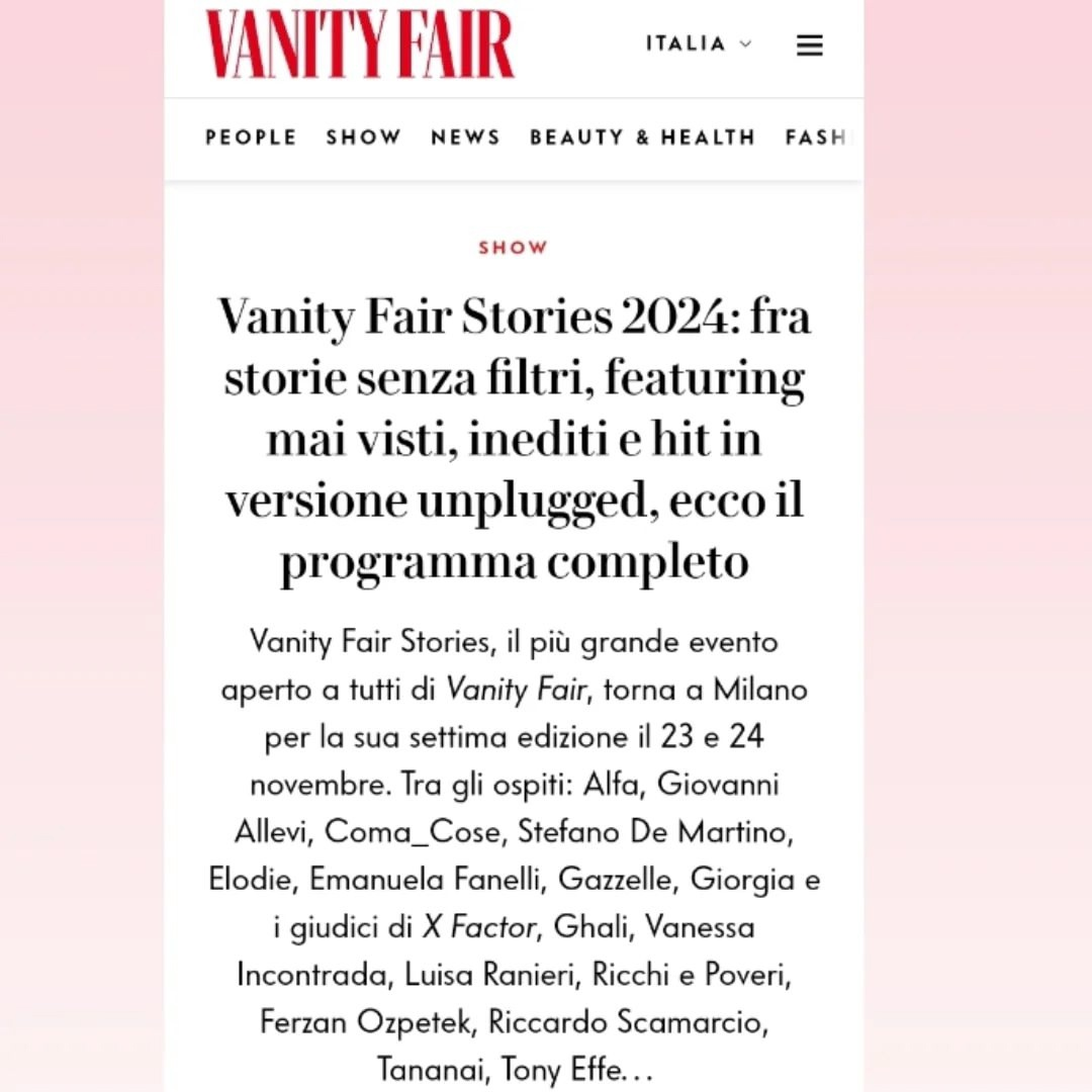 Vanity Fair Stories, най-голямото отворено за публика събитие на Vanity Fair, отново ще се проведе в миланската опера Giorgio Gaber в събота, 23 и неделя, 24 ноември. Седмото, безпрецедентно издание, посветено на темата „Изследване на неочакваното“, ще включва повече от 70 гости, видни фигури от музиката, киното, развлеченията и културата, включително разговори и представления, за повече от 20 часа безплатен вход и стрийминг на Vanityfair.it .